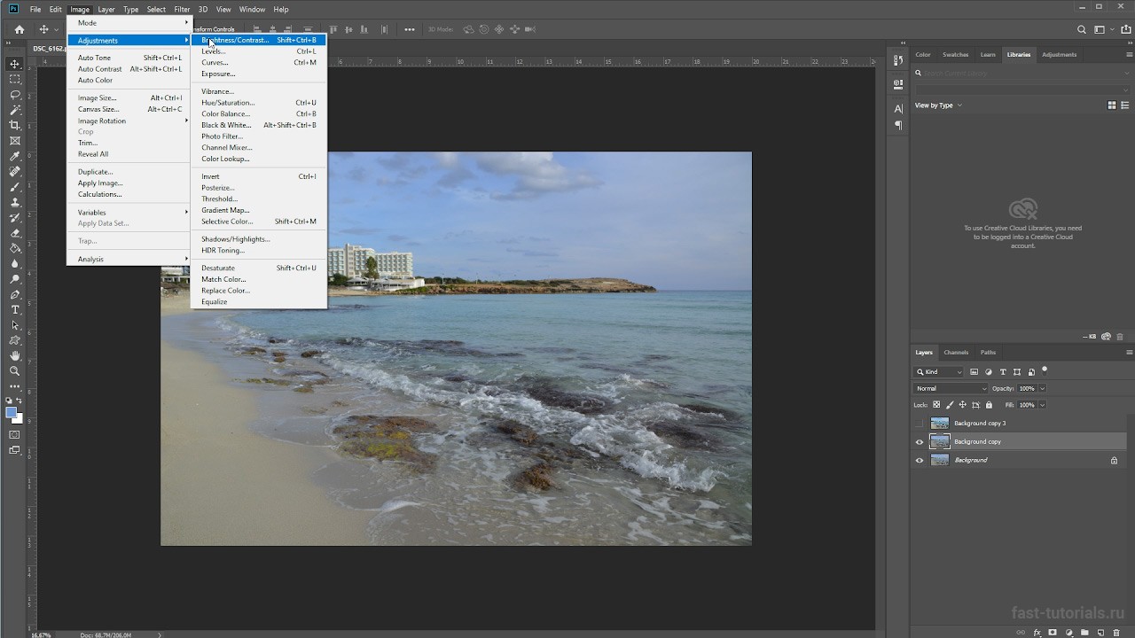 Сначала добавим немного яркости и контраста. Для этого в главном меню откройте: