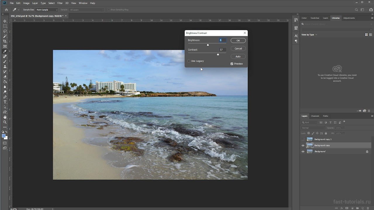 Image → Adjustments → Brightness / ContrastДобавьте немного яркости и контраста, перетащив оба ползунка немного вправо.